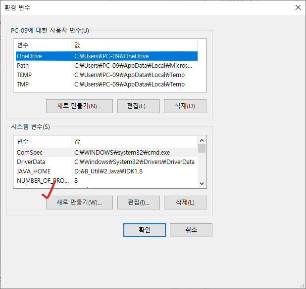 | 변수 이름(N) | JAVA_HOME |
