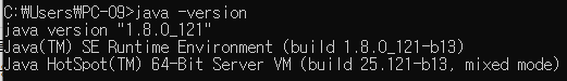 java -version 을 입력하여 등록이 됬는지 확인