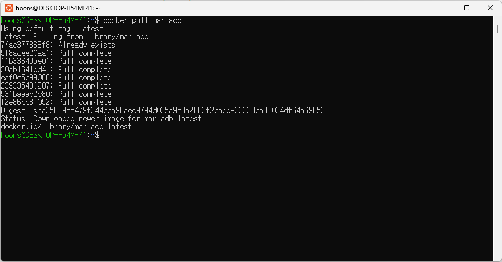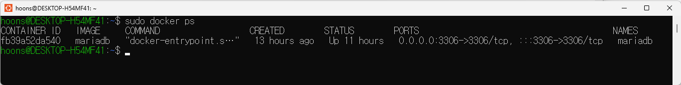 | mariadb | 컨테이너 만들 때 사용할 이미지 이름 |