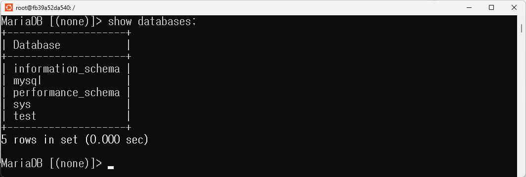 mariadb 접속시 cmd 라인이 MariaDB[(none)] 으로 바뀝니다.